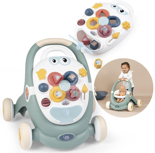 • 3-in-1 játék- toló, babakocsi és interaktív tábla, fejleszti a motoros készségeket, serkenti az érzékek fejlődését és a kéz-szem koordinációját,